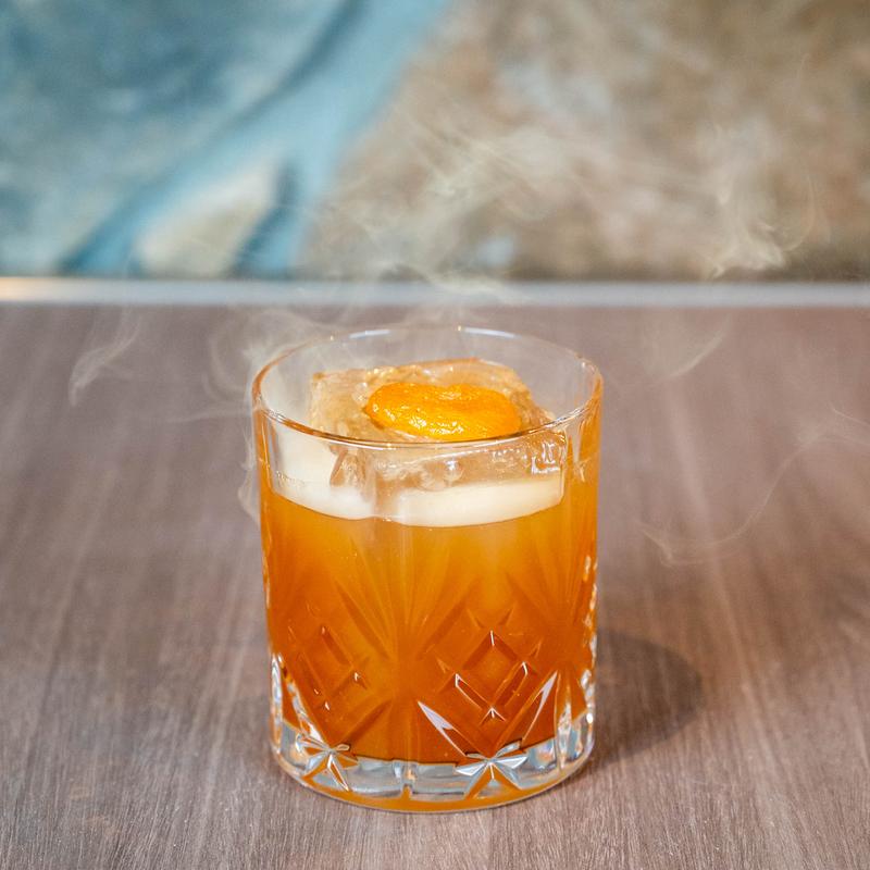 Apricot/toasted pecan infused in-house barrel-aged strananhan’s blue peak, house-crafted toasted pecan syrup, black walnut bitters